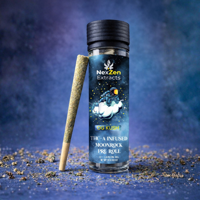 The THC-A infused moonrock pre roll- OG kush ia a full bodied experience build and uncompromising cannabis lovers. deliver a smooth, powerful journey from first spark to final exhale.Â