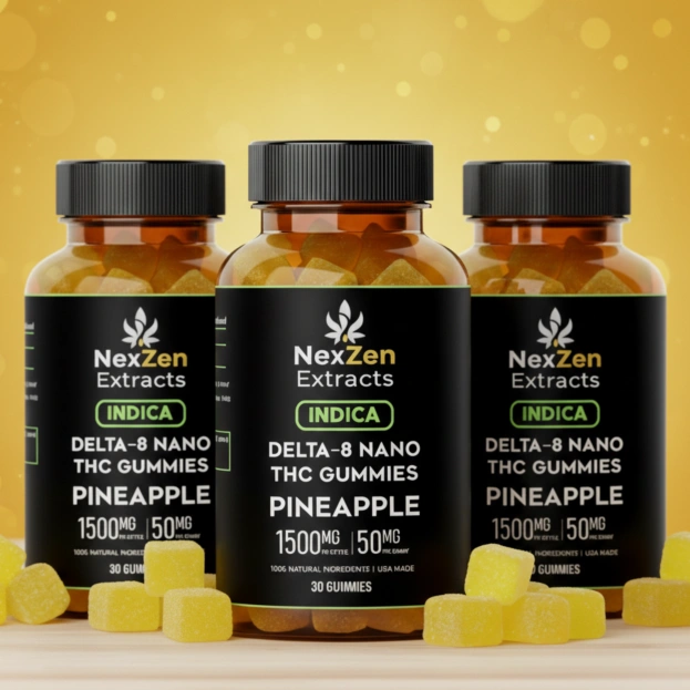 The Delta-8 Nano THC Gummies – Pineapple – Indica is an excellent brand of gummies that are tasty and tropical, act on us fairly quickly and definitely provide a strong sense of relaxation. They are perfect to use to unwind after a long day, along with your wind down routine for sleep, or just to have a pleasantly mellow euphoric next hour or two.